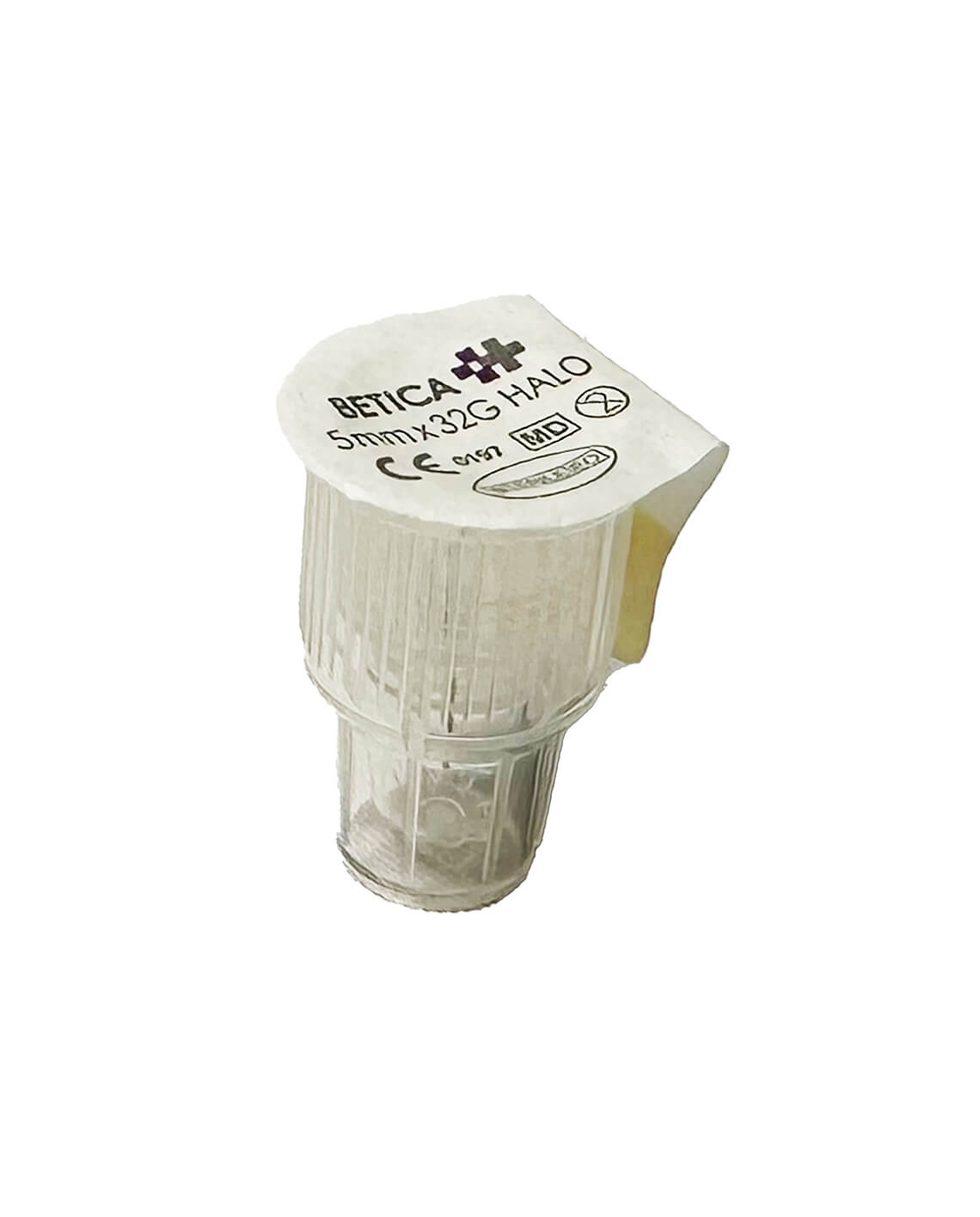 Met een grote vlakke naaldbasis. Dit is het grootste verschil met de reguliere Betica pennaald. De vlakke naaldbasis zorgt ervoor dat de druk beter verdeeld wordt over het huidoppervlak. Zo prikt u comfortabeler en krijgt u meer controle over de insulinetoediening.